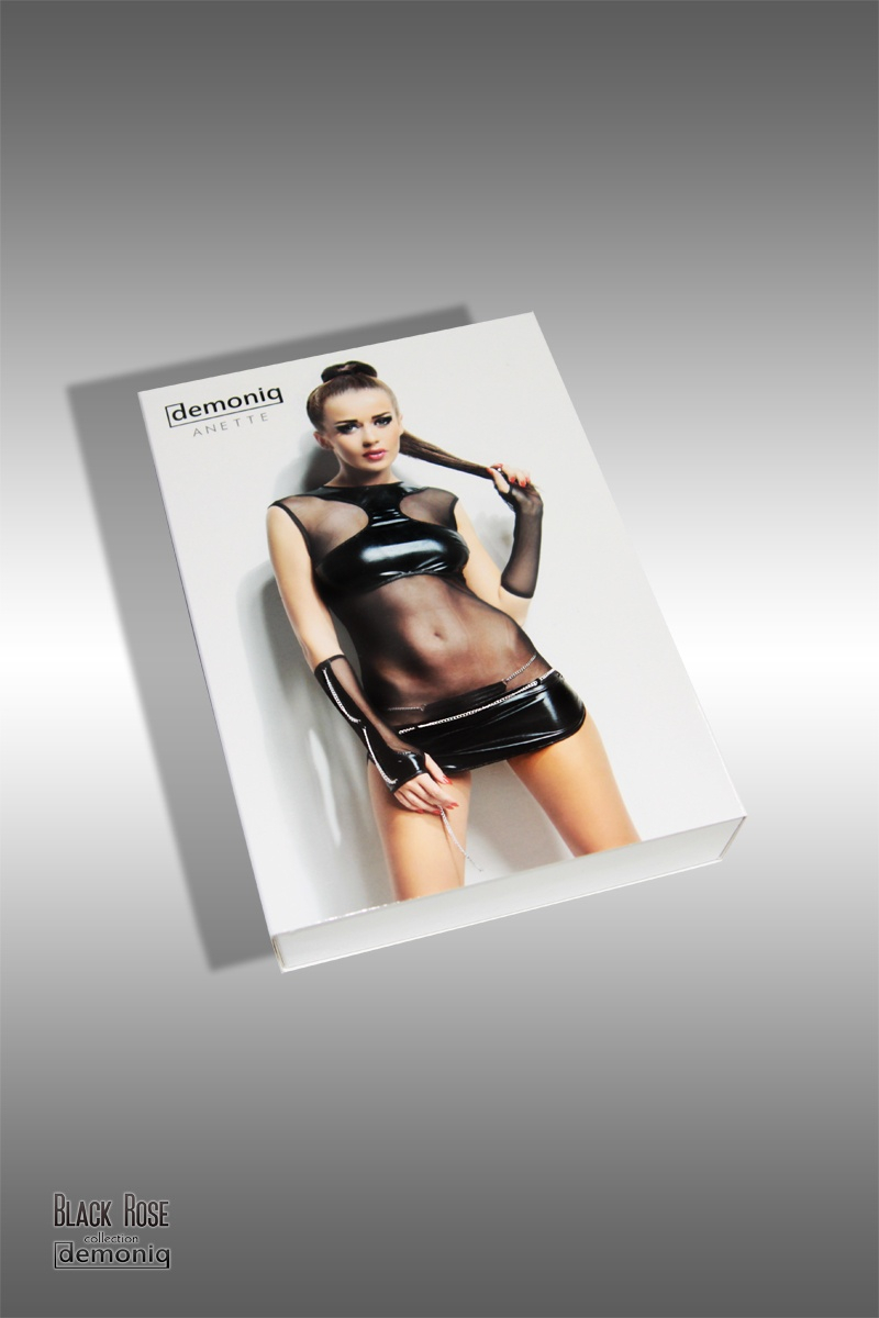 Перчатки и трусики, станут прекрасным дополнением к вашему образу. Металлические серебристые цепочки, черный эластичный материал под «кожу» с мокрым эффектом - идеально подчеркнут вашу сексуальность в комплекте Anette.