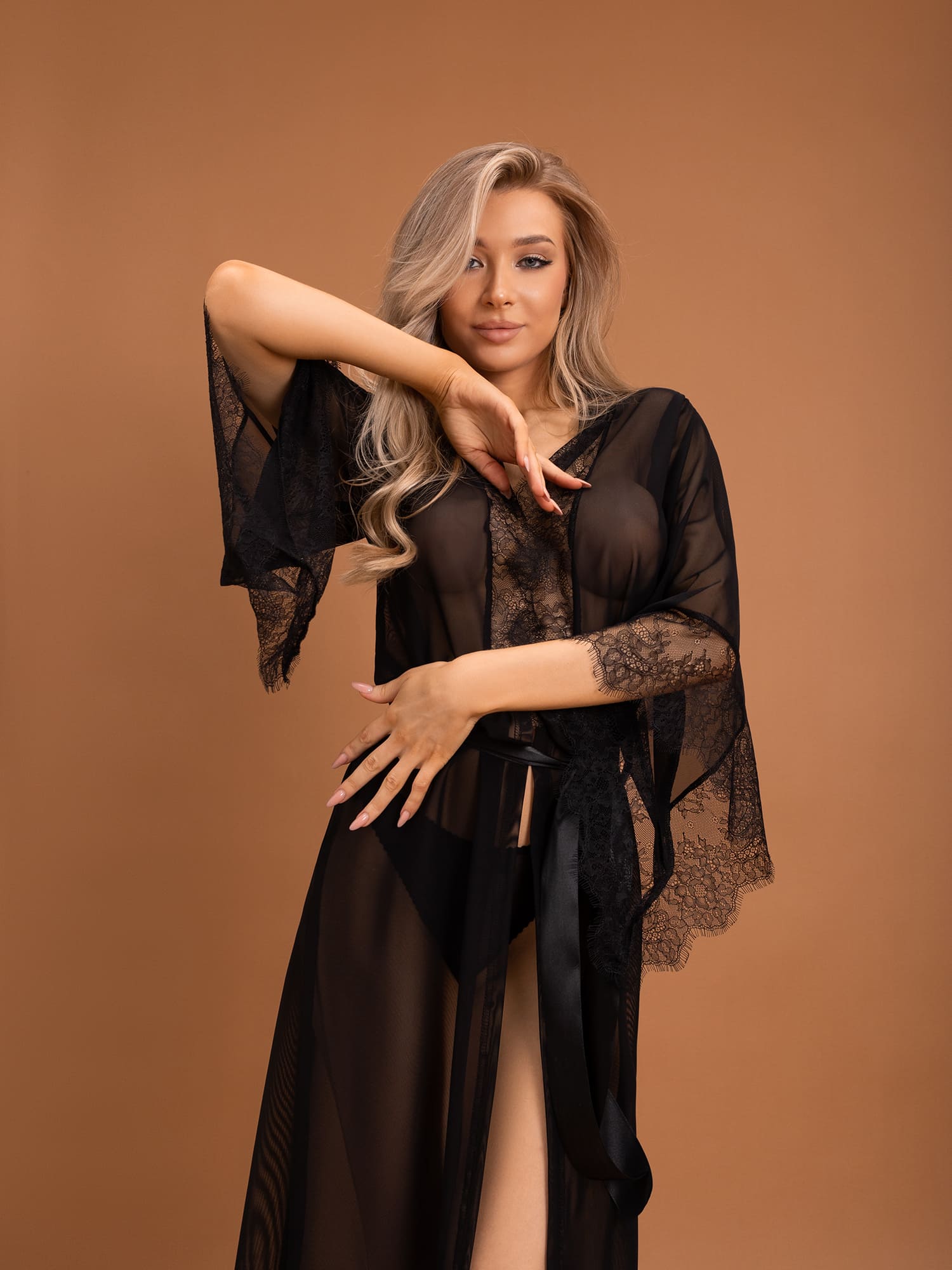 К тому же, благодаря расклешенным рукавам, этот пеньюар создает эффект легкости и плавности, а также подчеркивает тонкость и элегантность женских рук. В нем вы будете чувствовать себя уверенно и привлекательно, не снимая наряд даже во время близости.