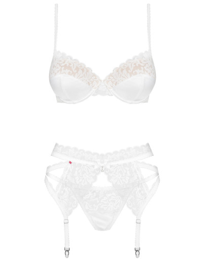 Бюстгальтер с уплотненными чашками на косточках. Съемные вкладыши пуш-ап приподнимают грудь и формируют соблазнительное декольте. Бретели несъемные, регулируемые по длине. Пояс для чулок с регулируемыми пажами.