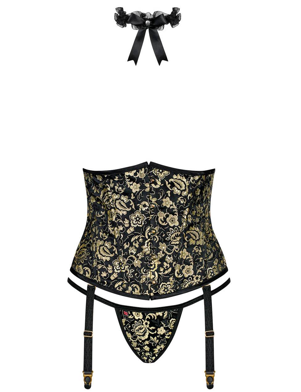Состав: корсет и стринги - 70% полиэстер, 30% хлопок; чокер - 45% нейлон, 30% полиэстер, 15% металл, 10% резина.