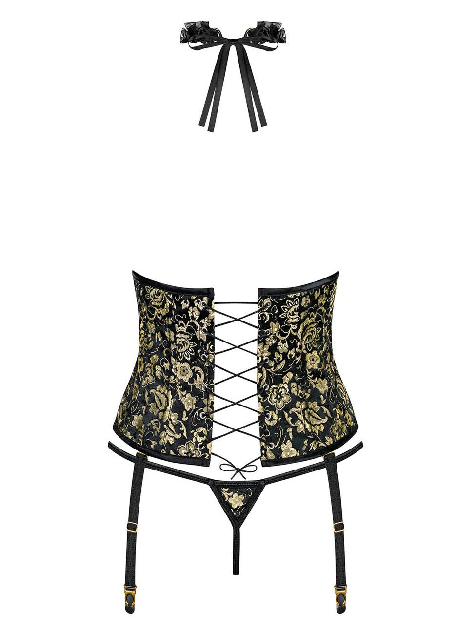 С вертикальными упругими косточками. Функциональная шнуровка гарантирует феноменальный внешний вид и отличную посадку. Пажи для чулок съемные, регулируются по длине.
