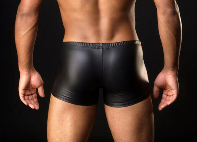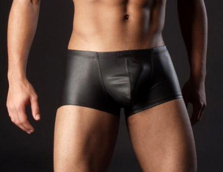 Сексуальные трусы-боксеры черного цвета, выполнены из материала 'под кожу'.