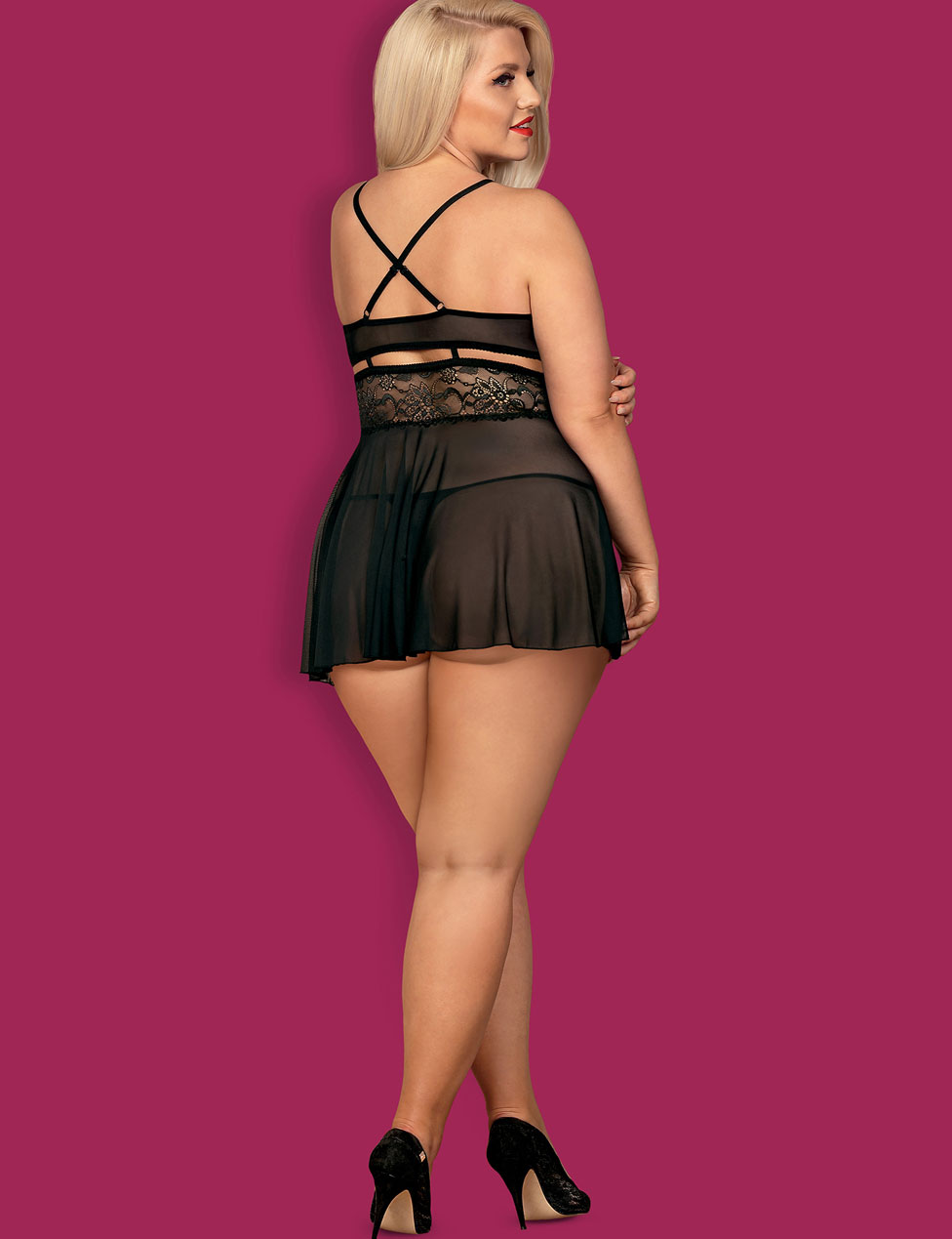 Выполнена из полупрозрачной вуали и эластичного кружевного полотна. Лиф мягкий, кружевной, на тонких регулируемых бретелях.