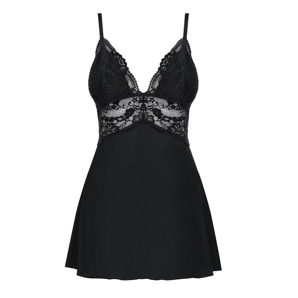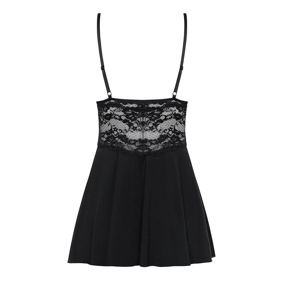 Легкий струящийся бэби-долл с шелковым блеском. Лиф с мягкими чашками из кружева и непрозрачно ткани, без косточек. Тонкие бретели не отстегиваются, регулируются по длине. В комплекте кружевные стринги с хлопковой ластовицей.