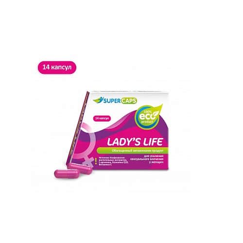 Lady`sLife (ЛэдисЛайф) комплексный продукт для усиления сексуального влечения у женщин.Продукт изготовлен по инновационной технологии гранулирования, с добавлением экстрактов и аминокислот, благодаря этому, комплекс натуральных активных веществ оказывает общий тонизирующий эффект, придает энергии,стимулирует кровеносную систему, включая органы малого таза, обладает противовоспалительным действием.Сочетание L-аргинина и Q10 влияют на омоложение всего организма, клеток кожи.Растительные экстракты ортилия однобокая (боровая матка) — издавна считается 'женской травой', обладает противовоспалительным действием и положительно влияет на половую систему. Родиола розовая, корень ашвагандхи и экстракт алтайского шиповника отличная тонизирующая смесь.
