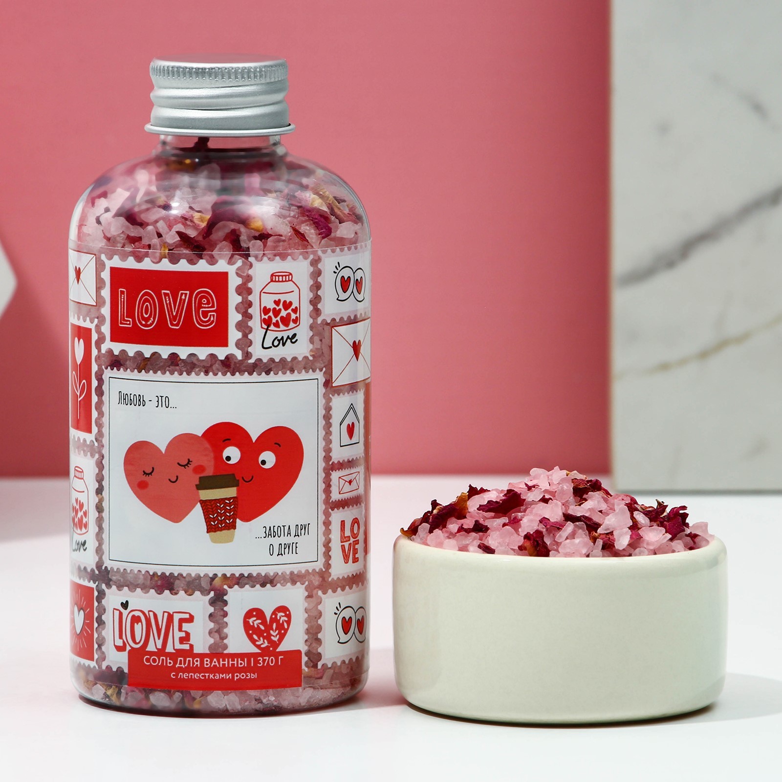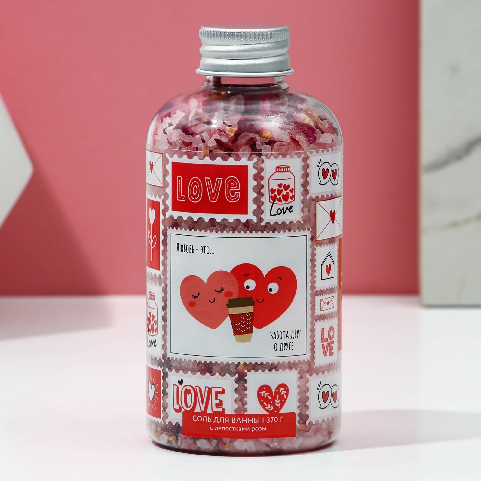Соль для ванны с лепестками роз «Любовь - это...», 370 г, ЧИСТОЕ СЧАСТЬЕ