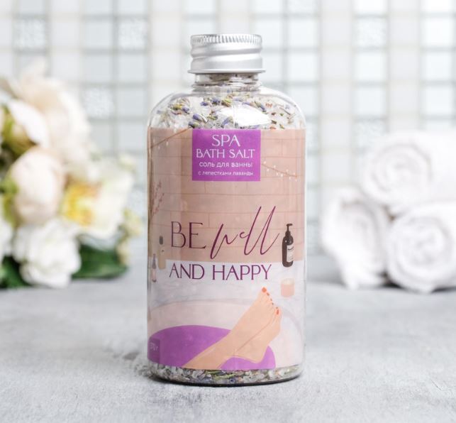 Соль для ванны с лепестками лаванды Be well and happy, 370 г, BEAUTY FОХ
