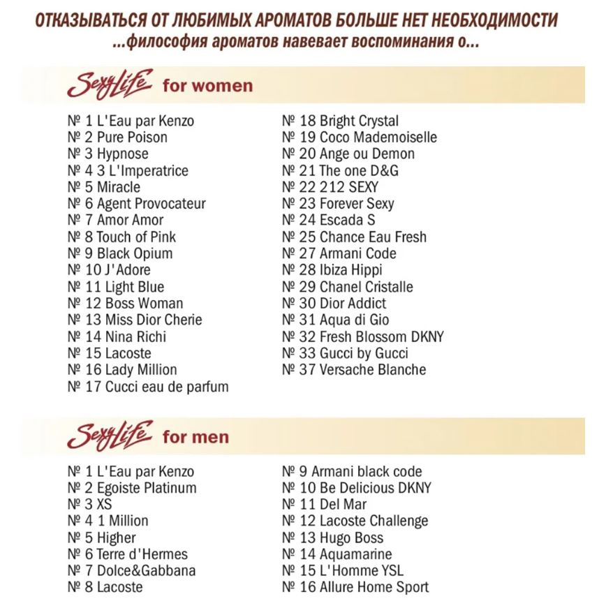 Парфюмерные композиции в составе духов произведены во Франции. Sexy Life — бренд с 20-летней историей. Формулы парфюма имеют научную доказательную базу: проводим научные эксперименты, подтверждающие действие феромонов, и поддерживаем связь с французскими лабораториями, чтобы совершенствовать продукт.