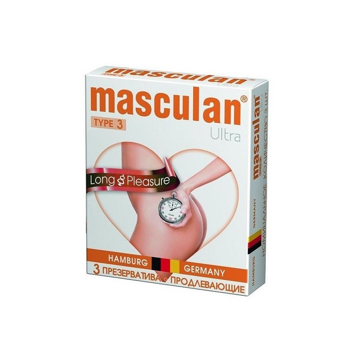 Ultra Long Pleasure от Masculan - презервативы классической формы с комбинированным рельефным узором, предназначенные для интимной защиты и контрацепции во время полового акта. Основная особенность Ultra Long Pleasure заключается в «продлевающем» эффекте: внутри презерватива на самом кончике расположена крохотная частичка воска, пропитанная анестетиком и служащая для воздействия только на нужные части полового члена.