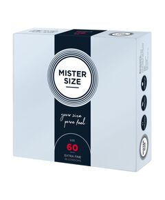 MISTER SIZE — 60 мм (36 шт.), идеальный презерватив. Ультратонкий (0,05 мм) — для максимальной интенсивности. Общая длина: 20 см Диаметр кольца: 6 см