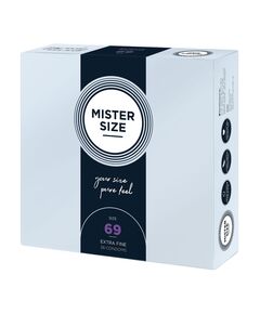 MISTER SIZE — 69 мм (36 шт.), идеальный презерватив. Ультратонкий (0,05 мм) — для максимальной интенсивности. Общая длина: 22 см Диаметр кольца: 6,9 см