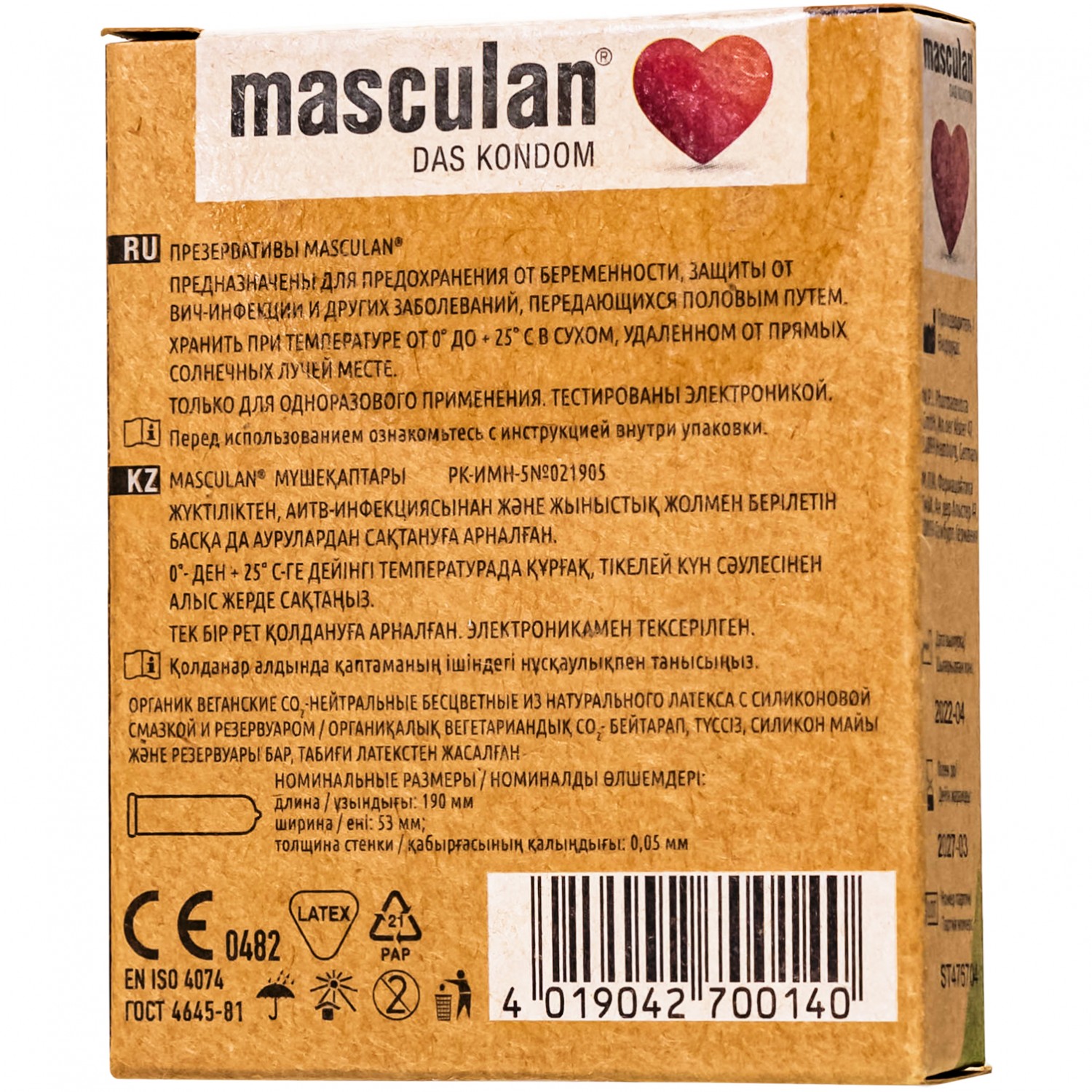 Экологически чистые презервативы Masculan Organic созданы для людей, разделяющих принципы осознанного потребления и заботы о природе. Нейтральный веганский презерватив с мягкой гладкой поверхностью предназначен для защиты во время интимного контакта. В процессе производства используется только растительный белок и нейтрализуется выделение углекислого газа.
