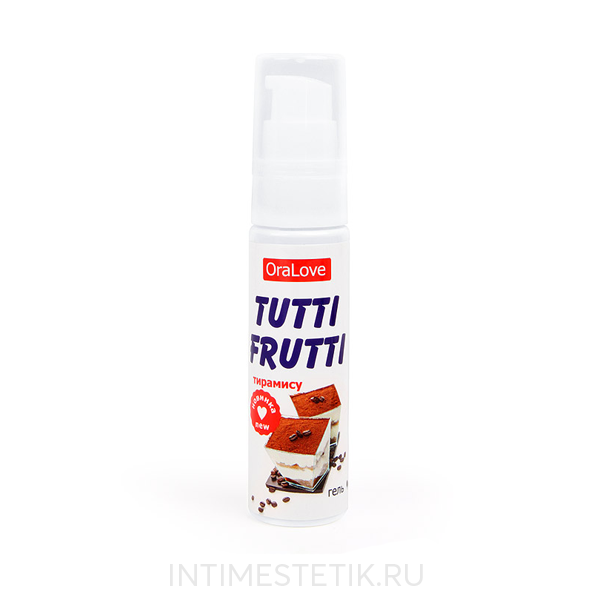 Гель 'Tutti-Frutti Тирамису'. Сделайте секс незабываемым и ярким, нежным, романтичным и по-настоящему сладким вместе с гелем-лубрикантом 'Tutti-Frutti Тирамису' от бренда 'Биоритм'! Это средство входит в серию OraLove, так же как и другие гели, но отличается богатым вкусом и восхитительным запахом. Лубрикант Tutti-Frutti Тирамису в меру сладкий, не приторный, слегка кофейный, роскошный, раскрывающийся постепенно. Его высоко оценят и женщины, и мужчины! Интересно, что слово 'Tiramisù' с итальянского переводится как бодрящий, или дословно 'подними меня, взбодри меня'. Так и гель-лубрикант действует возбуждающе, стимулирует к активным действиям, ярким впечатлениям, любовным играм.