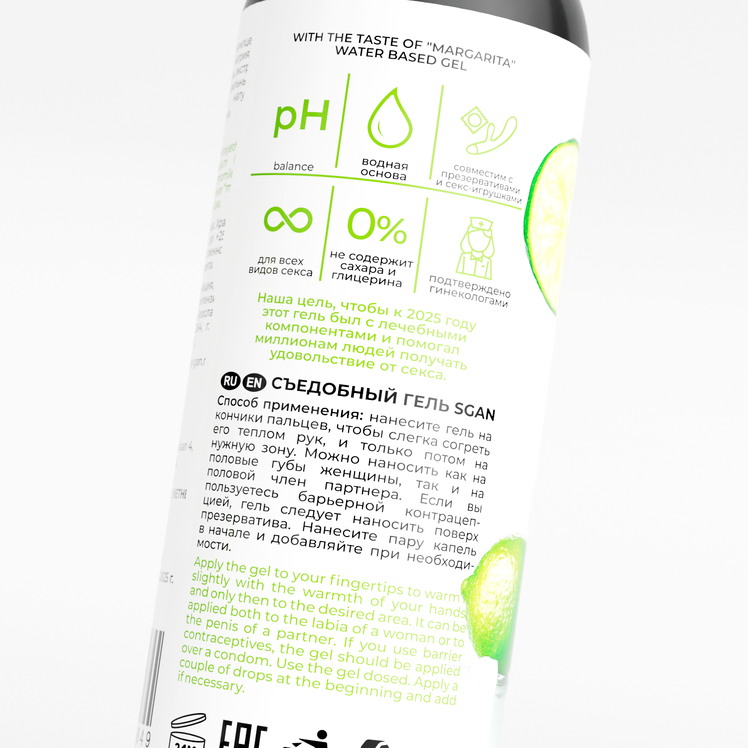 Вкусовая линейка лубрикантов "SGAN" разработана с учетом физиологии, совмещает в себе вкус и аромат, при этом сохраняет все регенерирующие свойства классического лубриканта. Не оставляет липкости, без химического привкуса, не содержит сахара и калорий. Для сладости добавлен натуральный подсластитель - сукралоза. Абсолютно безопасен для проникновения и при проглатывании.