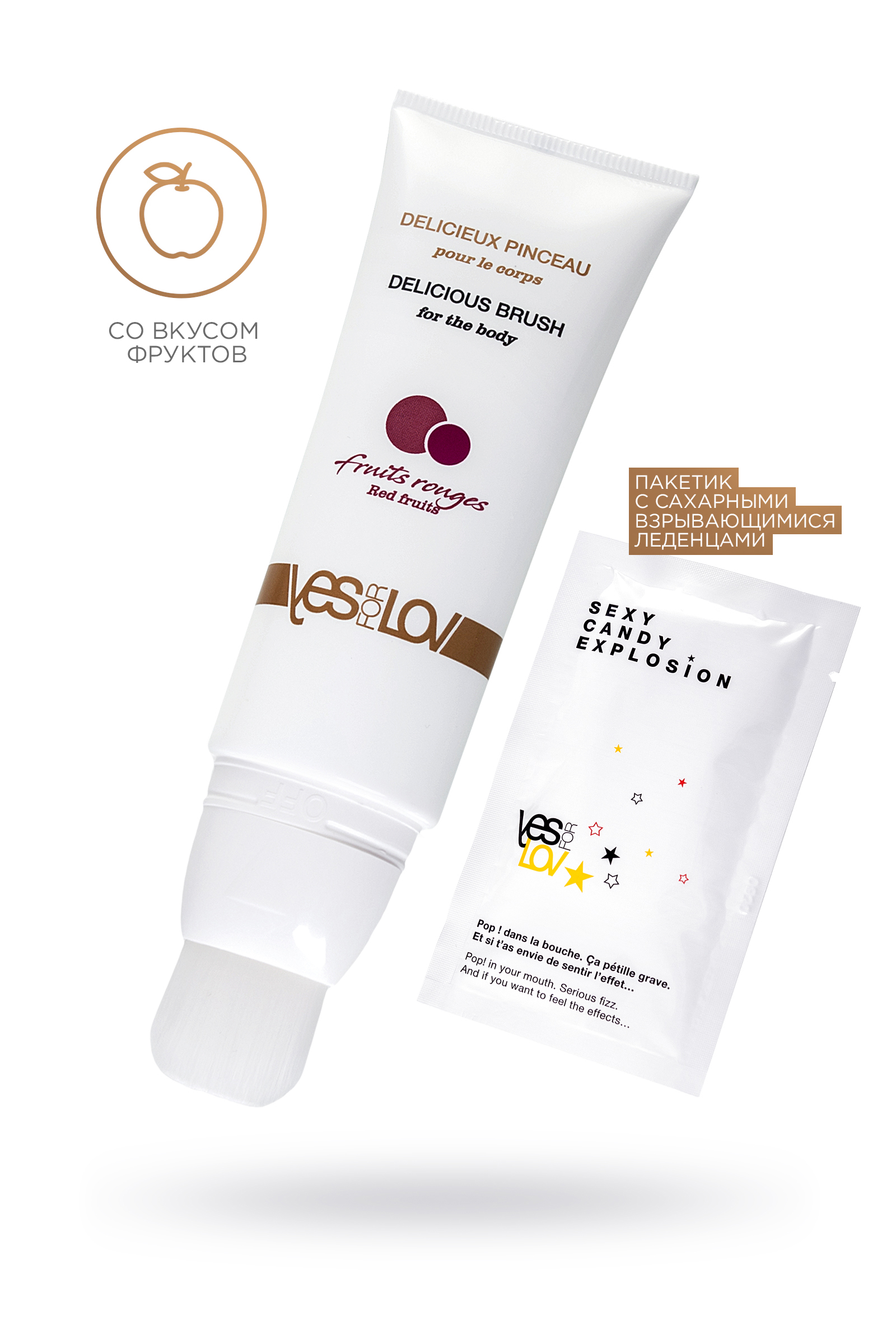 Удивительный набор для оральных ласк от французского бренда YESFORLOV представляет Вам вкусные романтические угощения для самых взыскательных. Какую часть вашего тела вы предложите своему партнеру? В наборе оральный лубрикант со вкусом красных фруктов + 1 пакетик драже со взрывной карамелью. Приятный на вкус оральный лубрикант обладает легкой консистенцией и удобным аппликатором в виде кисти. Теперь Вы сможете буквально разукрасить вкусами тело любимого человека, взмахнув кистью словно настоящий художник. Удобный тюбик позволит нанести вкусовой лубрикант на любую зону достаточное количество, не растекаясь. Подходит для всего тела, включая самые чувствительные эрогенные интимные зоны. Вам, несомненно, понравится вкус, а партнер будет обрадован такому сюрпризу. Лубрикант не липкий и может быть использован в качестве смазки. Состав: GLYCERIN, AQUA (WATER), AROMA, SODIUM SACCHARIN. Объем 50 мл.