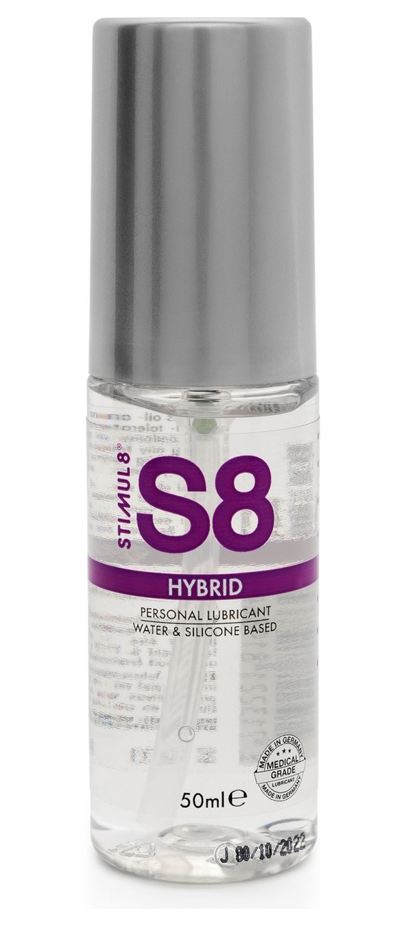 Лубриканты Hybrid S8 - это смазки премиум-класса, которые идеально подходят для тех, кто не может определиться с выбором основы для смазки. Они сочетают в себе шелковистое скольжение силиконовых лубрикантов и легкое очищение от смазок на водной основе. Максимально натуральная, смазка Hybrid не содержит парабенов, фталатов, глютена, сульфатов, добавленных красителей и агрессивных консервантов. S8 также соответствует всем действующим нормативам ЕС в отношении продуктов для интимной гигиены