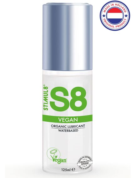 Веганская лубрикантная смазка премиум-класса на водной основе от S8 идеально подходит для тех, кто ищет безопасную для тела качественную смазку, которая усилит интимные ощущения и сделает их более приятными. Эта удивительная, долгоиграющая формула от S8 полностью веганская, что делает ее выбором для тех, кто заботится о своем здоровье и окружающей среде. Формула не содержит парабенов, фталатов, глютена, сульфатов, а также красителей и агрессивных консервантов, что придает ей неотразимую «натуральную» привлекательность.