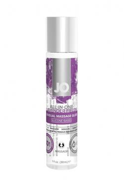 Массажный гель-лубрикант на силиконовой основе All-in-One Massage Glide lavender. Универсальное средство для чувственных наслаждений и идеального скольжения с ароматом лаванды. Силиконовая основа обеспечивает гладкое и шелковистое длительное скольжение по коже во время массажа. Можно оставить на коже и он будет работать как кондиционер, помогая коже удерживать влагу и защищать от внешнего воздейсвтия. Водостойкая формула идеально подходит для игр в душе. С All-in-One массаж комфортно может перейти в классический или анальный секс. Теперь не нужно множественных тюбиков на прикроватной тумбочке, достаточно JO All-in-One. Одно средство для массажа, для классического и для анального секса, для игр в воде, для ухода за кожей. Шелковистый и нежный, абсолютно не липкий. Не скатывается. Может использоваться как лосьон для визуального увеличения яркости татуировок. Одна капля силиконового массажного геля равно 10 капель обычного масла. Очень экономичный расход. Рекомендуется во всем мире врачами и фармацевтами.