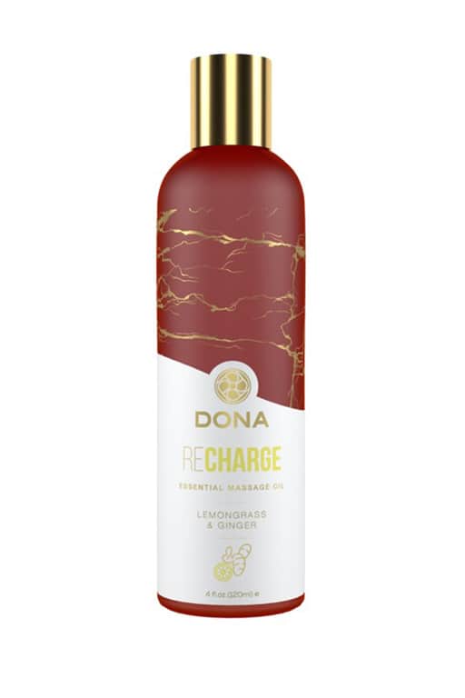 DONA Essential Massage Oil Lemongrass & Ginger – эфирное масло для массажа на натуральной растительной основе с ярко выраженным ароматом лемонграсса и имбиря. Благодаря тщательно продуманной формуле масло обеспечивает длительное гладкое скольжение, позволяющее при массаже уберечь кожу от негативного воздействия. Входящие в состав натуральные средства и витамин Е прекрасно увлажняют и питают кожу. Сочетание травянистой свежести лемонграсса и волнующей пикантности имбиря освежит, зарядит энергией, придаст бодрости. Этот волшебный аромат создан для тех, кто хочет снять стресс, поднять жизненный тонус и придать отношениям волнующей пикантности.Применение: Масло идеально подходит для бодрящего тонизирующего массажа всего тела. Просто нанесите несколько капель и начните массировать.
