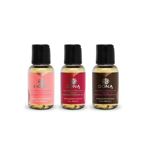 Подарочный набор вкусовых массажных масел с феромонами DONA by JO 3х30 мл.